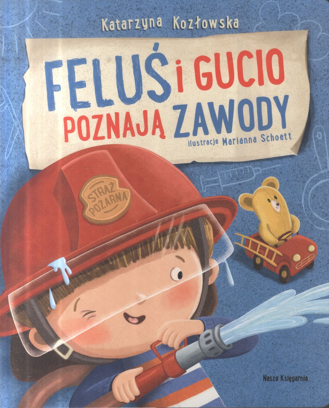 Jak każdy przedszkolak, Feluś jest bardzo ciekawy świata. Fascynują go ludzie wykonujący różne zawody i chętnie ich naśladuje podczas zabaw z kolegami i koleżankami. Raz jest kucharzem, raz odkrywcą kości dinozaurów, a kiedy indziej buduje z klocków niesamowite budowle Zawsze jednak wspaniale opiekuje się swoim kotem! Feluś ma wiele pasji i próbuje swoich sił w rozmaitych dziedzinach, żeby odkryć, co tak naprawdę lubi robić. Miś Gucio, towarzysz Felusia, także poznaje zawody chce być fryzjerem albo kierowcą. A może jednak weterynarzem lub aktorem? Wszystkie zawody są ciekawe! Wspólna lektura zachęci małego czytelnika do odkrywania swoich mocnych stron, do zadawania pytań o zawody osób z najbliższego otoczenia, a także do rozmów o tym, czym są wytrwałość i wykorzystywanie swoich atutów...(https://lenaczyta.pl/Felus-i-Gucio-poznaja-zawody-p274156)