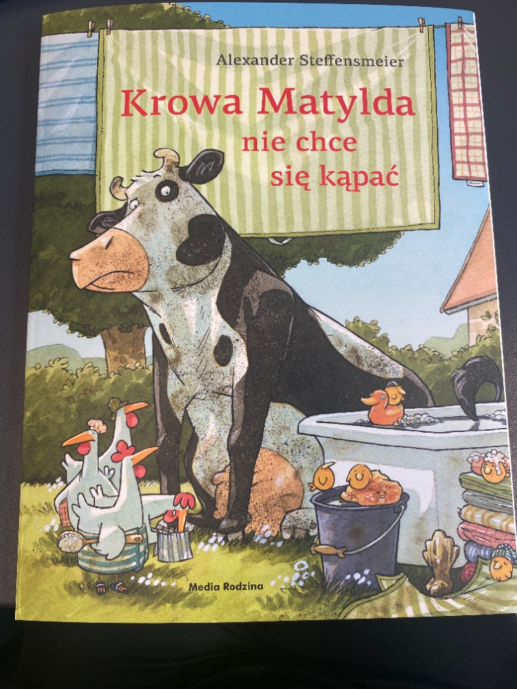 "Krowa Matylda nie chce się kąpać" to kolejna z serii książek dla dzieci historia o sympatycznej krowie. Znana już czytelnikom książka tym razem pojawia się w księgarniach w nowym, zeszytowym wydaniu. Podczas wspólnych harców krowa Matylda i jej przyjaciele z gospodarstwa bardzo się pobrudzili. Przed snem wszyscy muszą się porządnie umyć! Matylda nie ma na to ochoty. Wystarczy, że tylko trochę się opłucze. Gospodyni jednak nie ustępuje i chwyta ogrodowy wąż. Zaczyna się zabawa...(https://lenaczyta.pl/Krowa-Matylda-nie-chce-sie-kapac-BR-p533628)