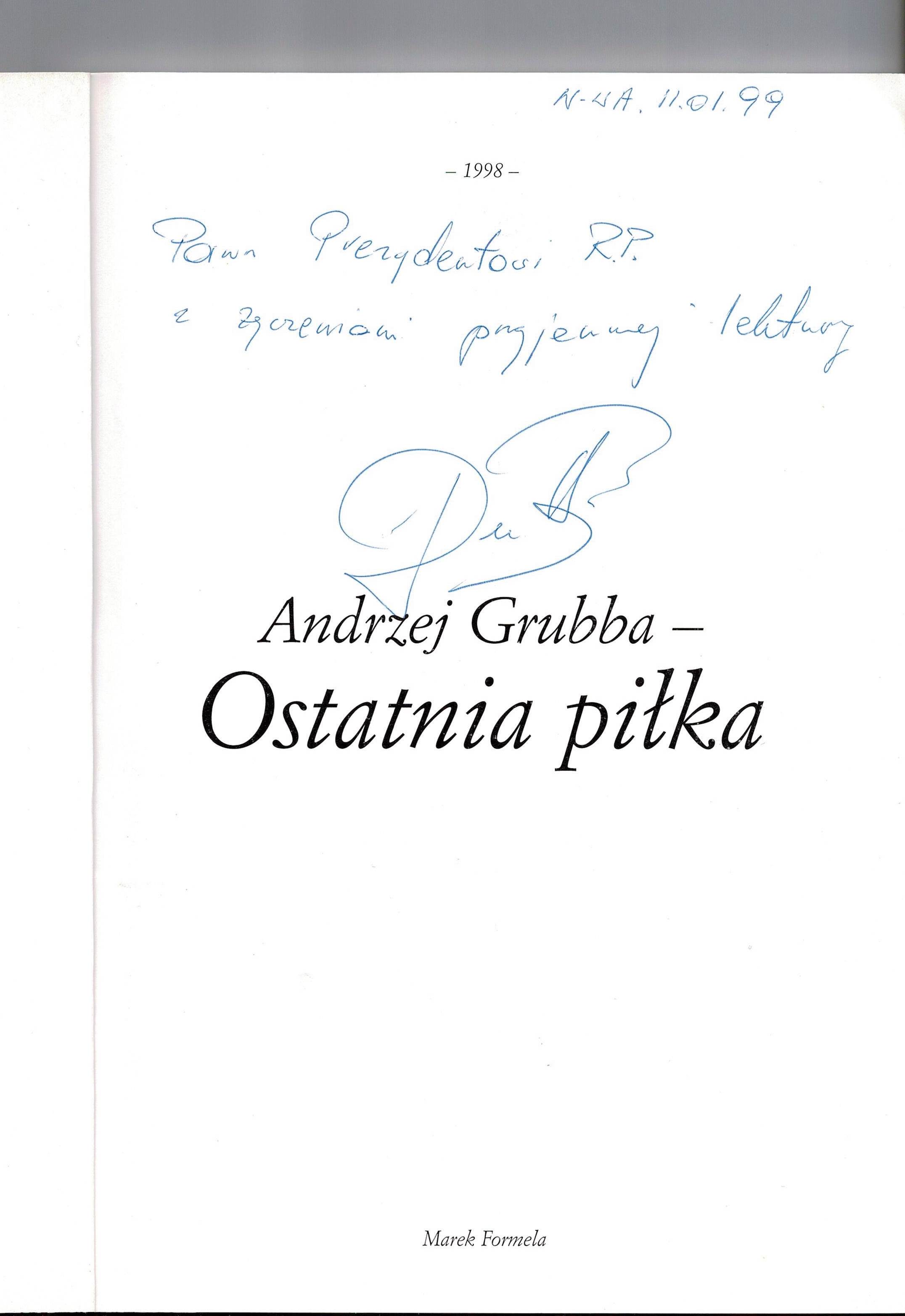Treść dedykacji: Panu Prezydentowi RP. z życzeniamiprzyjemnej lektury, Grubba A., W-wa.11.01.99