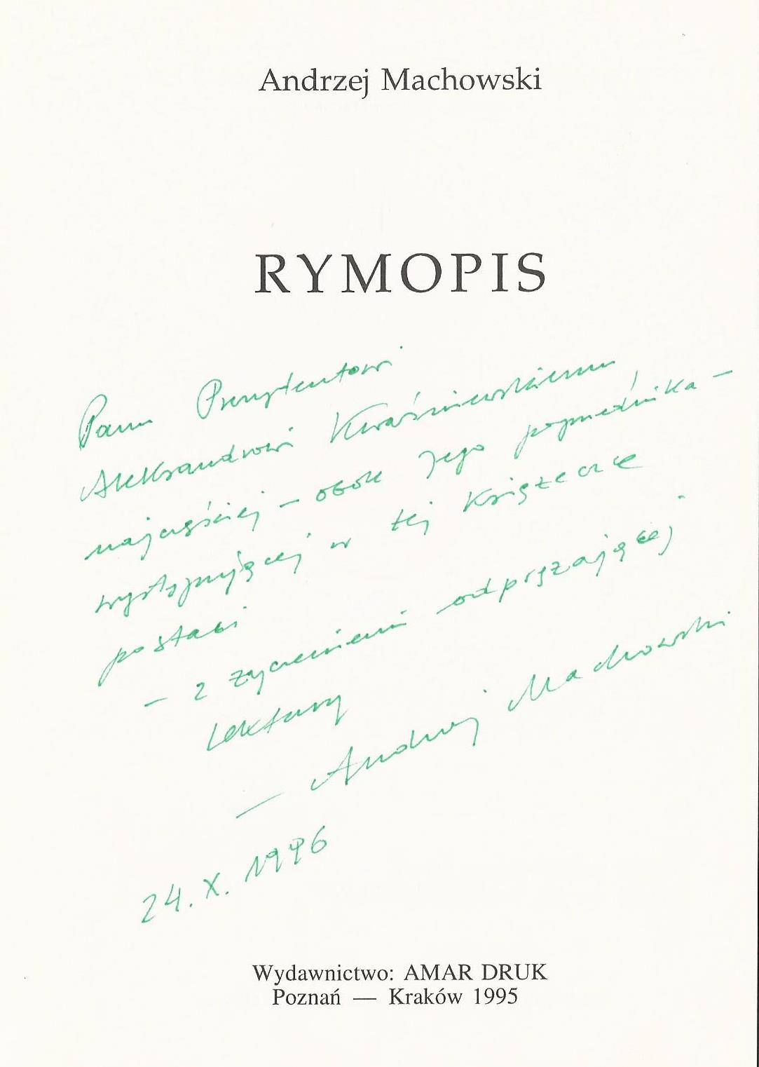 Rymopis/Andrzej Machowski - Pozanań-Karków:Amar Druk,1995. - 87stron:rysunki;20cm.