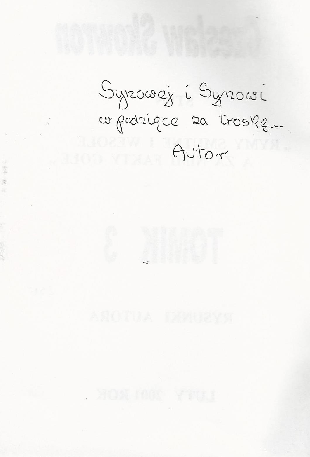 Treść dedykacji: Synowej i Synowi w podzięce za troskę... Autor