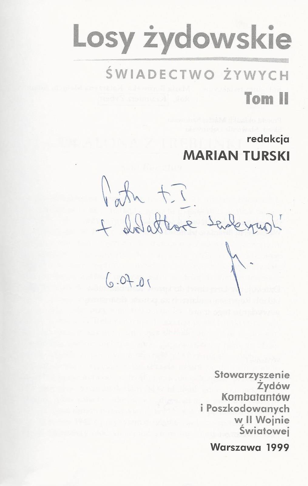 Treść dedykacji: Treść dedykacji nieczytelna
