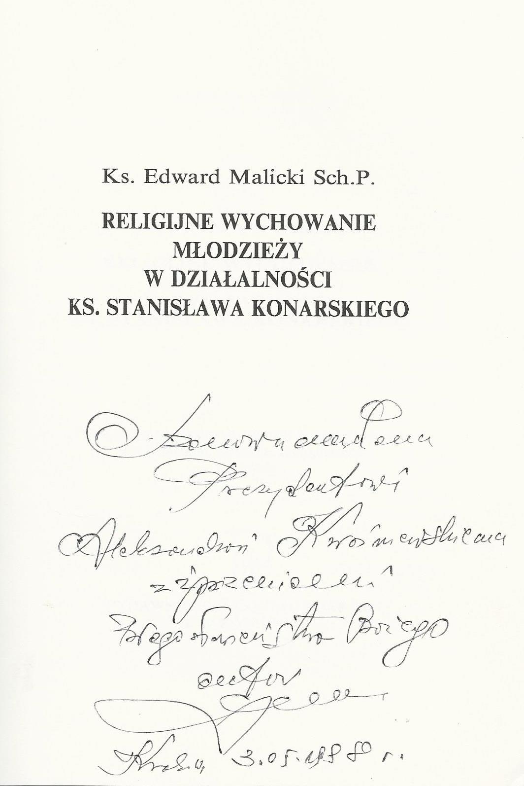Treść dedykacji: Szanownemu Panu Prezydentowi Aleksandrowi Kwaśniewskiemu z zaproszeniem Błogosławieństwa Bożego autor Karków, 3.05.2998 r.