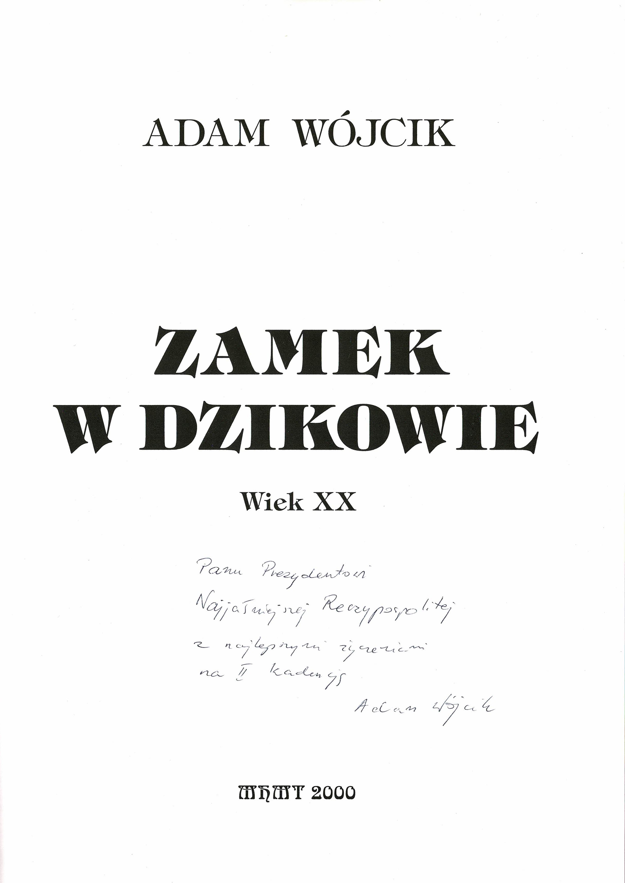 Treść dedykacji: Panu Prezydentowi Najjaśniejszej Rzeczypospolitej z najlepszymi życzeniami na II kadencję Adam Wójcik