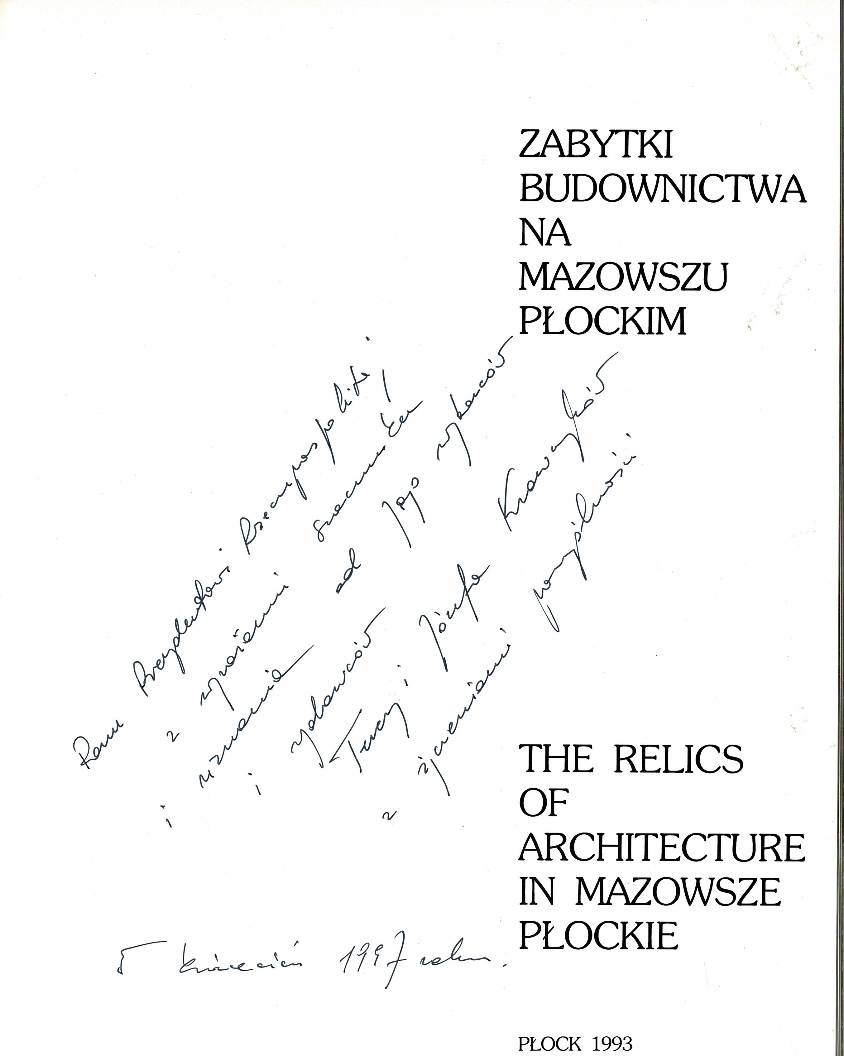 Treść dedykacji: Panu Prezydentowi z wyrazami szacunku i uznania od Jego wyborców Teresy i Józefa Kowaczyków z życzeniami pomyślności , 5 kwiecień 1997 rok