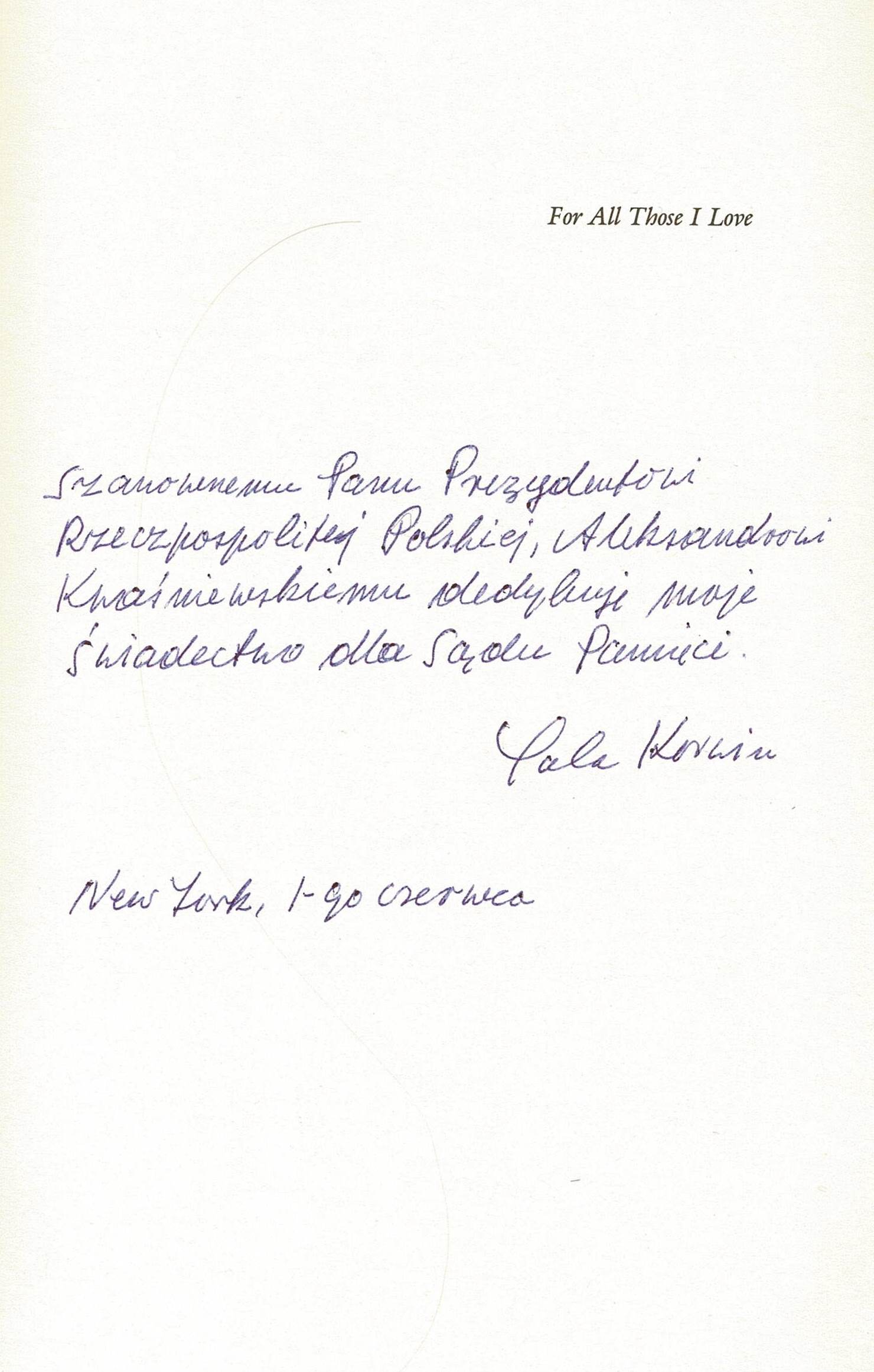 Podtytuł: Szanownemu Panu Prezydentowi Rzeczypospolitej Polskiej, Aleksandrowi Kwaśniewskiemu dedykuje moje świadectwo dla Sądu Pamięci