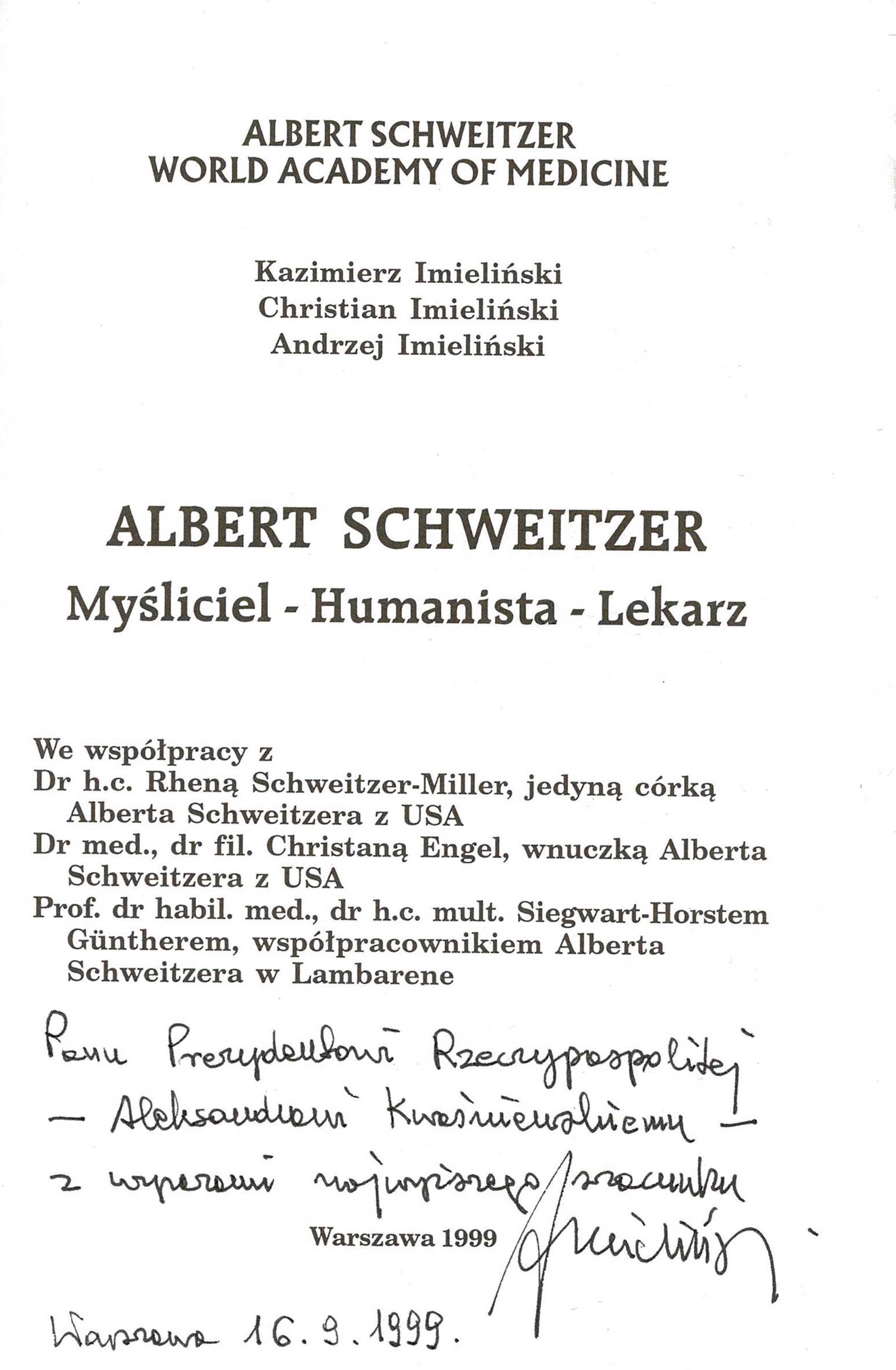Treść dedykacji: Panu Prezydentowi Rzeczypospilitej - Aleksandrowi Kwaśniewskiemu - z wyrazami najwyższego szacunku