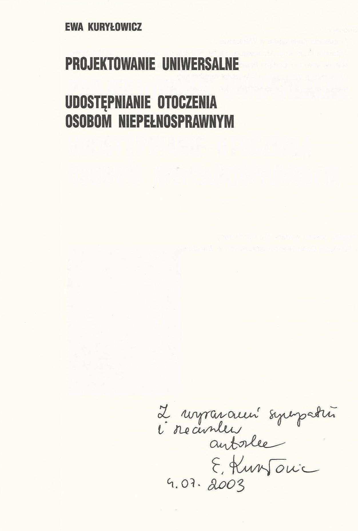 Treśc dedykacji: Z wyrazami sympati i szacunku autorka E.Kurłowicz 4.07.2003