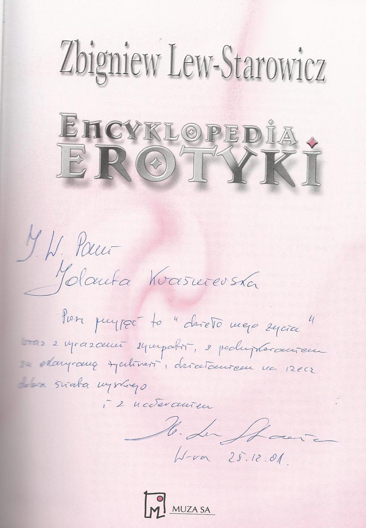 Treść dedykacji: J.W. Pani Jolanta Kwaśniewska Prosze przyjąc to "dziło mego życia" wraz z wyrazami sympatii, z podziękowaniem za (dlasza część dedykacji nieczyrtelna).