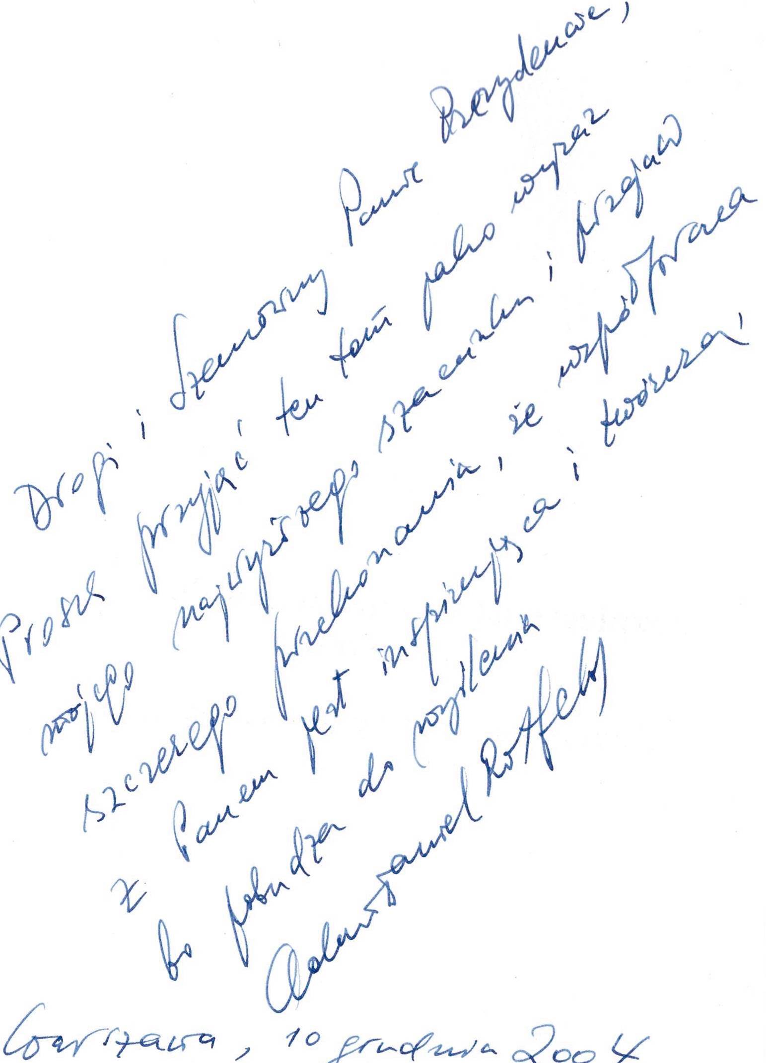 Tresć dedykacji: Drogi i Szanowny Panie Prezydencie Proszę przyjąc ten tom jako wyraz mojego najwyższego szacunku i szczerego przekonania, że współpraca z Panem jest insporującą i twórczą, bo skłania do przemyśleń