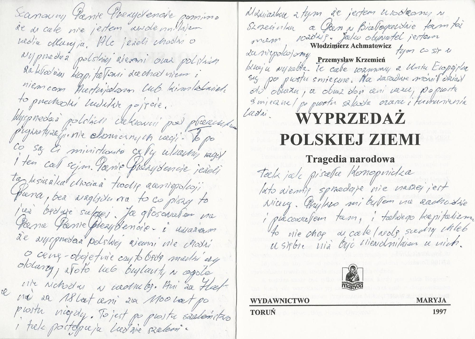 Treść dedykacji nieczytelna