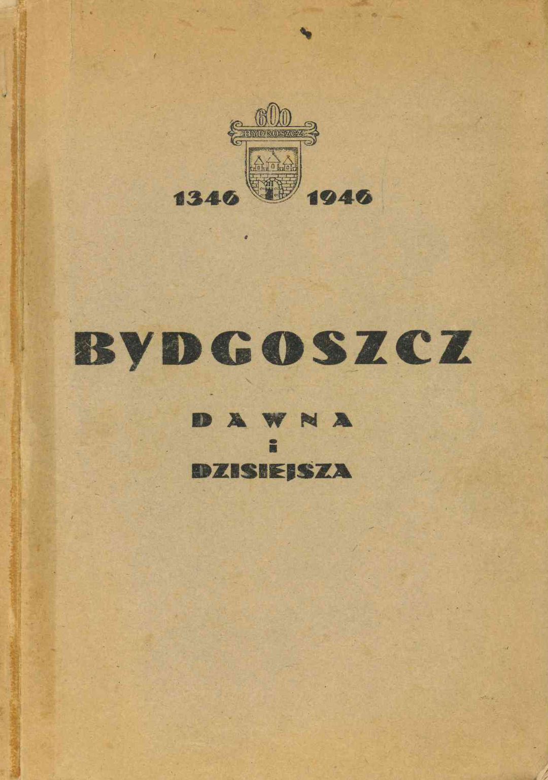 Bydgoszcz dawna i dzisiejsza : 1346-1946 / [oprac. Alfred Kowalkowski]. - Bydgoszcz : Wydawnictwo Komitetu 600-lecia Miasta Bydgoszczy, [1946]. - 93 strony : ilustracje ; 23 cm + Bydgoszcz : plan miasta 1:25 000 / wyk.w kwietniu 1945 r. L. Ziółkowski : 1 k. złoż. mapa : kolor. ; 43x80 cm, złoż. 21x14 cm.