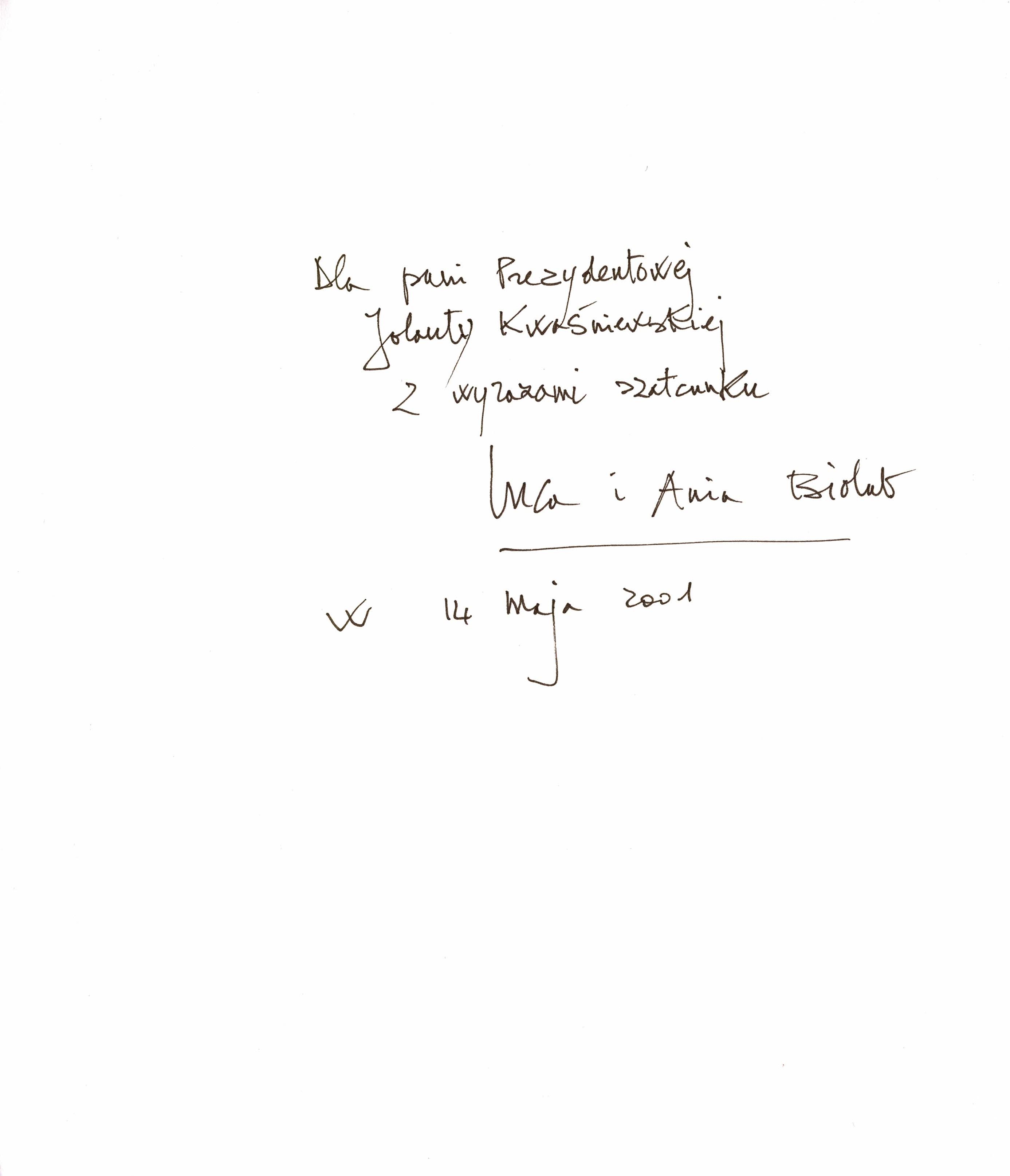 Treść dedykacji w języku angielskim