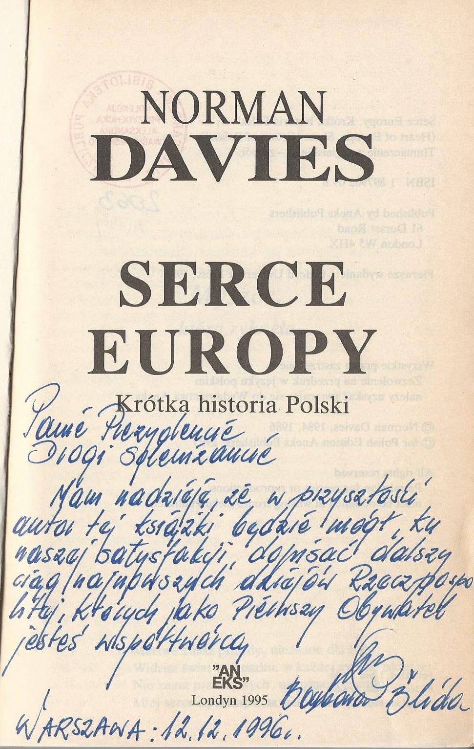 Treść dedykacji: Panie Prezydencie Drogi Solenizancie Mam nadzieję, że w przysłości autor tej książki będzie mógł ku naszej satysfakcji, dopisać dalszy ciąg najnowszych dziejów Rzeczypospolitej, których jako Pierwszy Obywatel jesteś współtwórcą. Warszawa: 12.12.1996r.