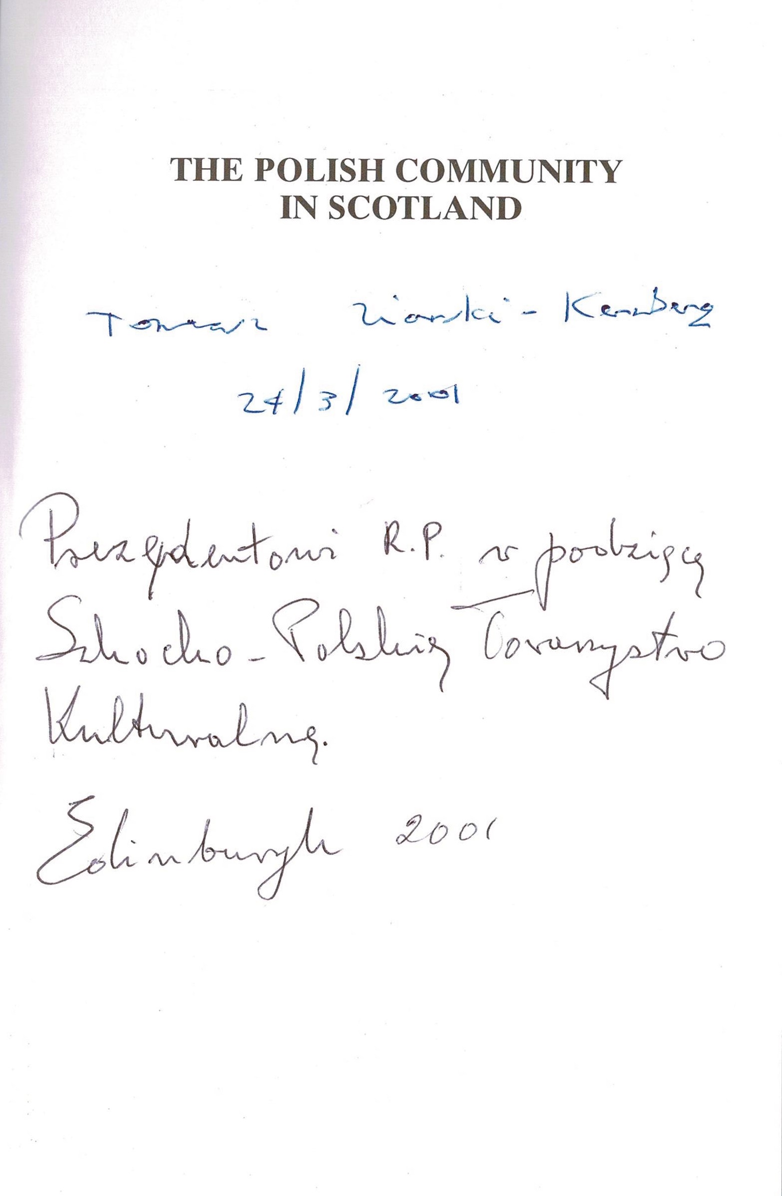 Treść dedykacji: Prezydentowi R.P. w podzięcę Szkocko-Polskie Towarzystwo Kulturalne. Edinburgh 2001.