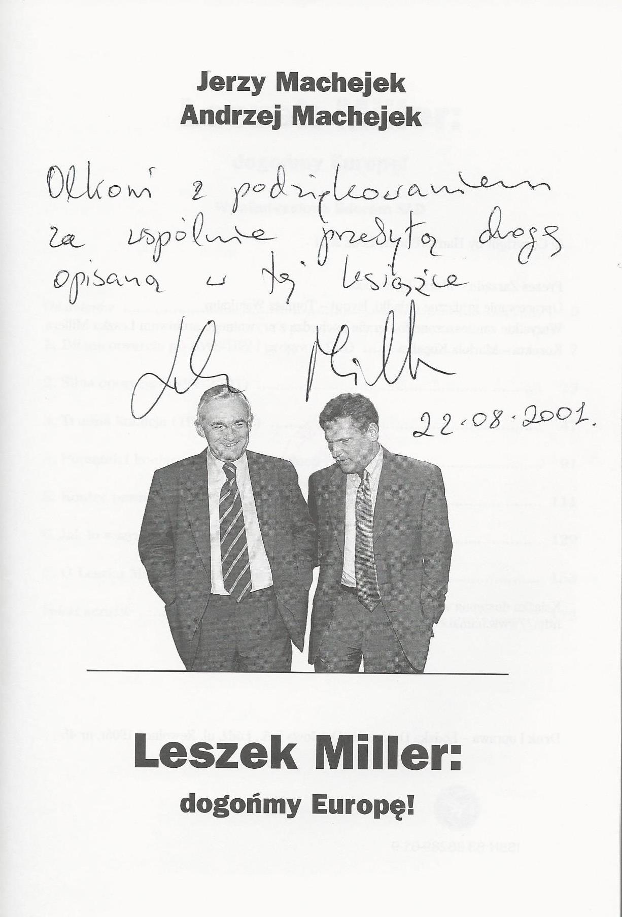 Treść dedykacji: Olkowi z podziękowaniem za wspólnie przebytą drogę opisaną w tej książce Leszek Miller 22.08.2001.