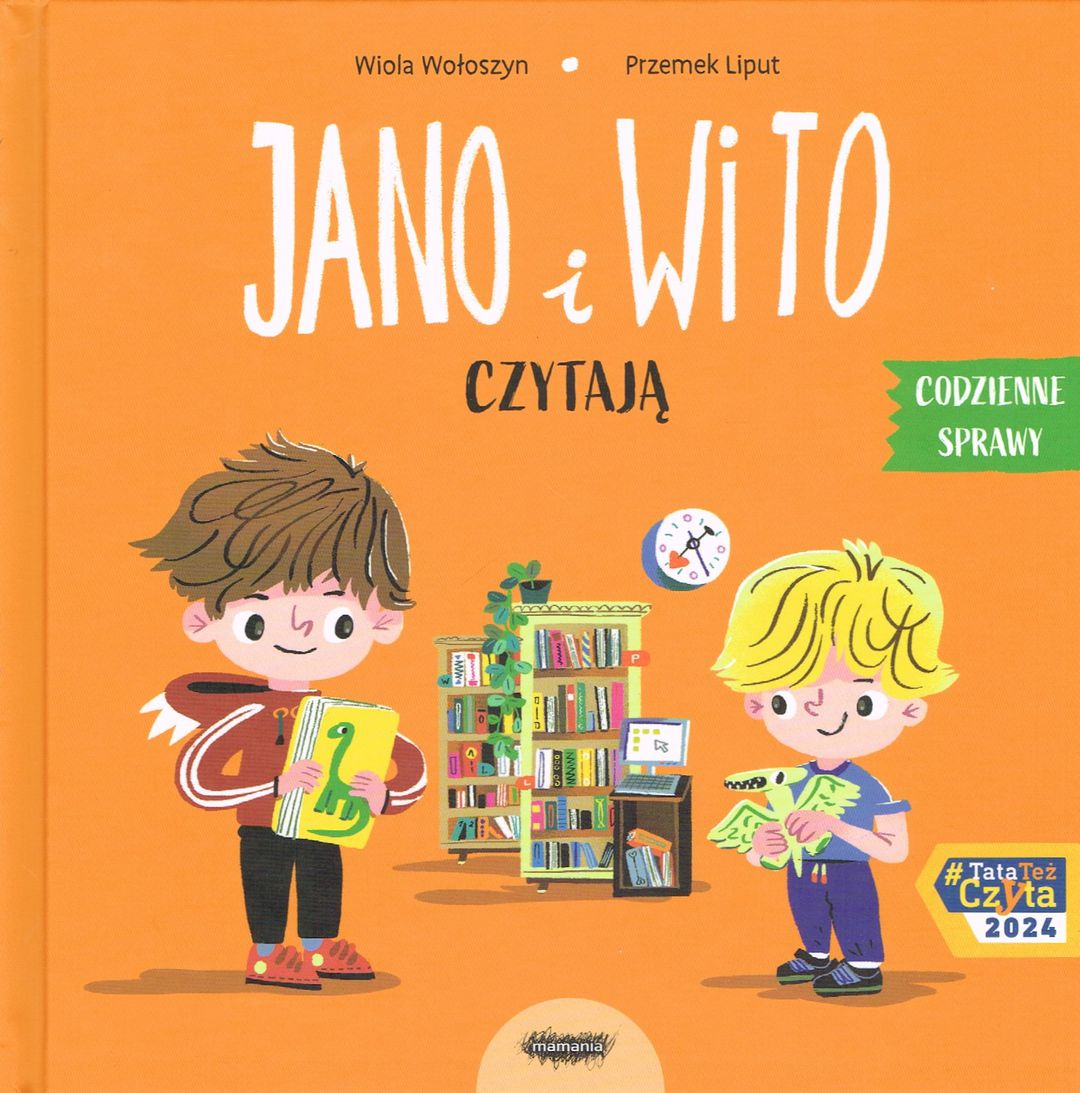 Jano i Wito czytają / Wiola Wołoszyn, ilustracje: Przemek Liput. - Warszawa : Mamania, copyright 2024. - [21] stron : ilustracje ; 20x20 cm.