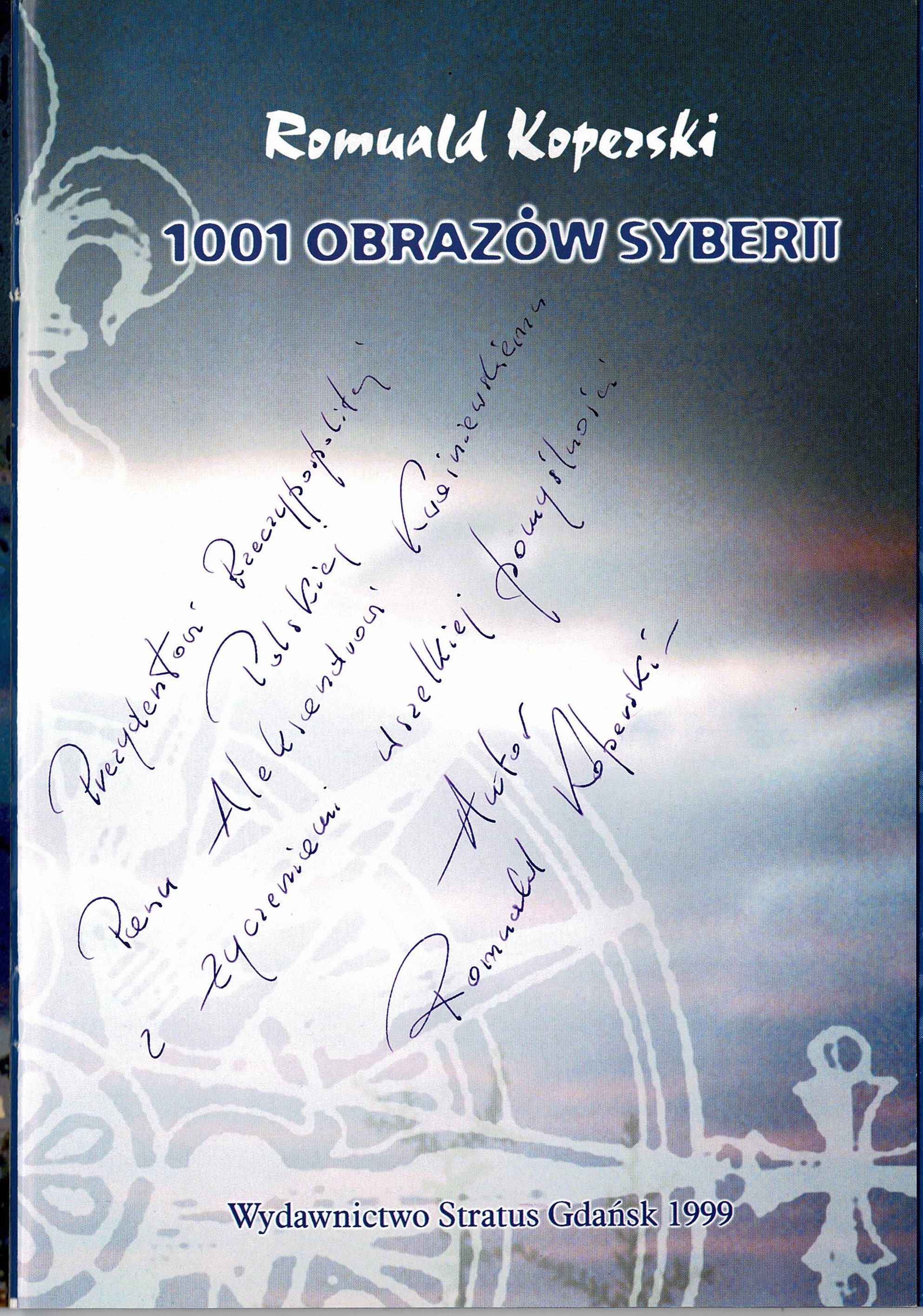 Treść dedykacji: Prezydentowi Rzeczypospolitej Polskiej Panu Aleksandrowi Kwaśniewskiemu w dowód uznania Autor R. Koperski 08. X. 2001