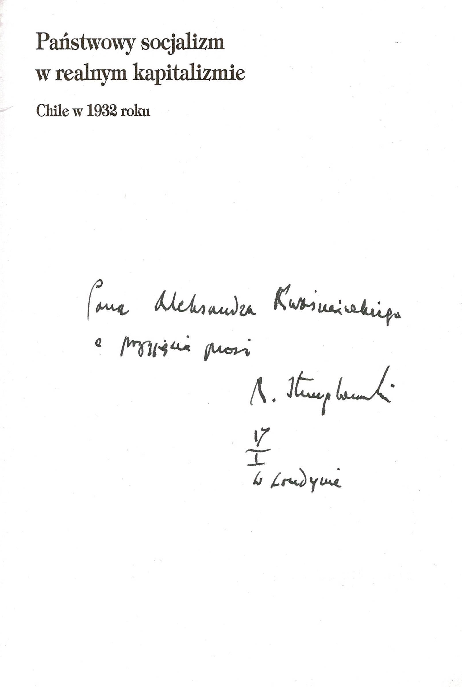 Treść dedykacji: Pana Aleksandra Kwaśniewskiego o przyjęcie prosi R. Stemplowski w Londynie.