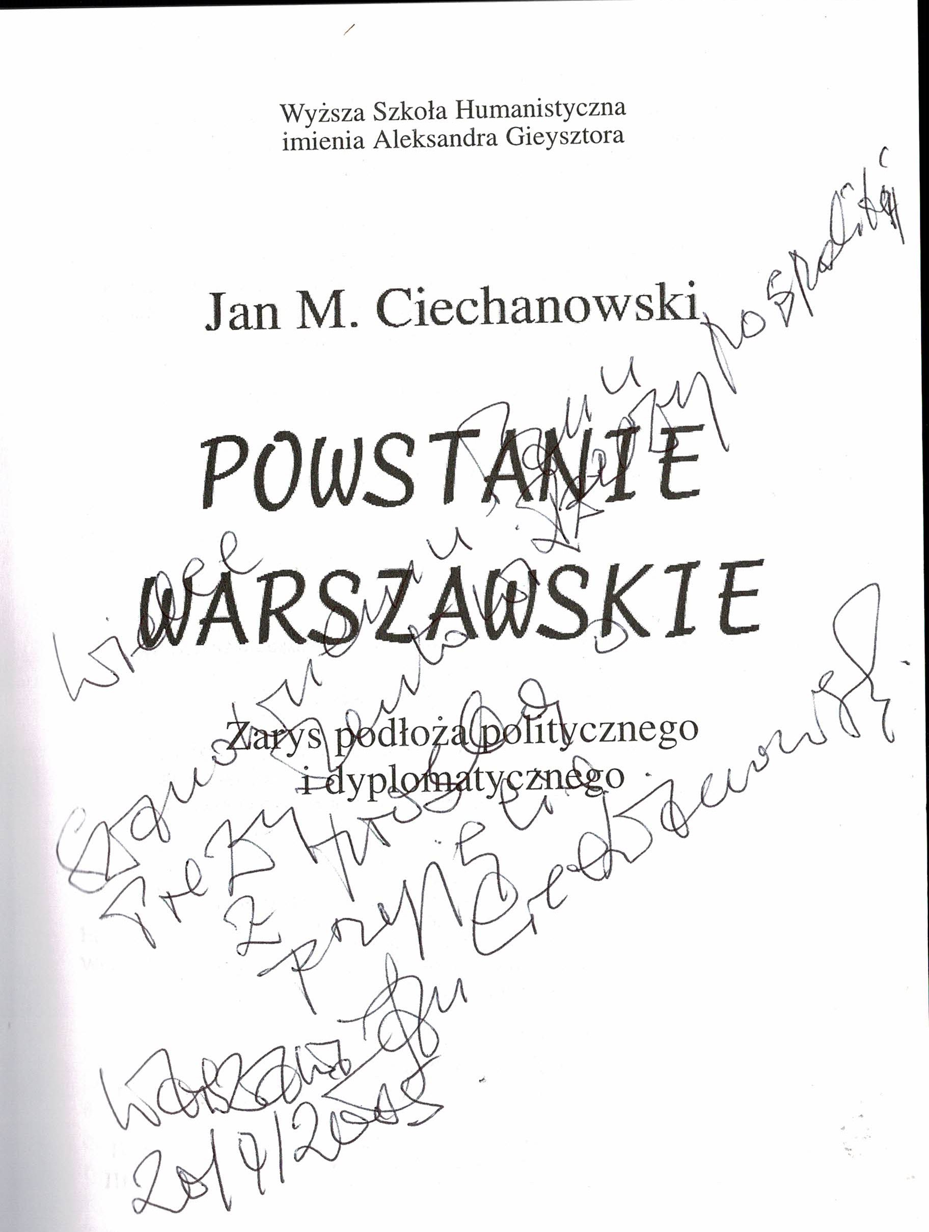 Treść dedykacji: Wielce Szanownemu Panu Prezydentowi Rzeczypospolitej Polskiej z prośbą o przyjęcie Ciechanowski